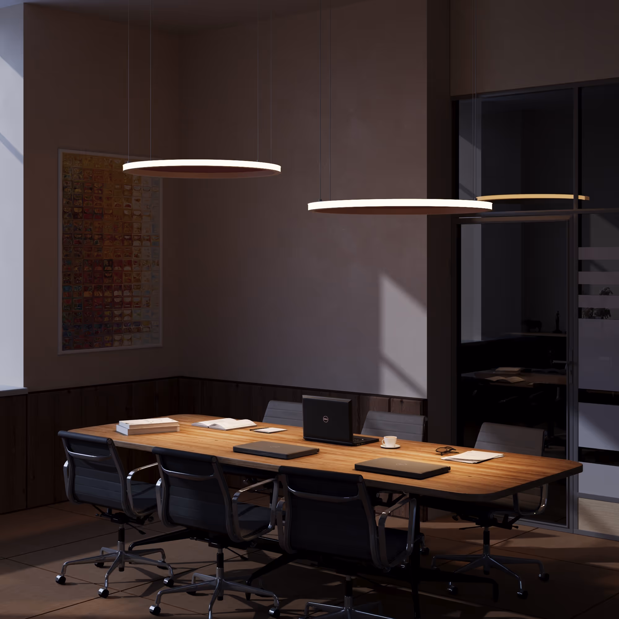 The AURALIS pendant delivers expansive 300° beam coverage with a sleek, ultra-slim profile, seamlessly combining acoustic absorption and functional illumination. Crafted from 100% P.E.T. felt and polycarbonate, its refined design makes it ideal for modern commercial, educational, and hospitality spaces seeking both visual comfort and sound control. Offered in multiple sizes and finishes, AURALIS balances performance and aesthetics in open environments.