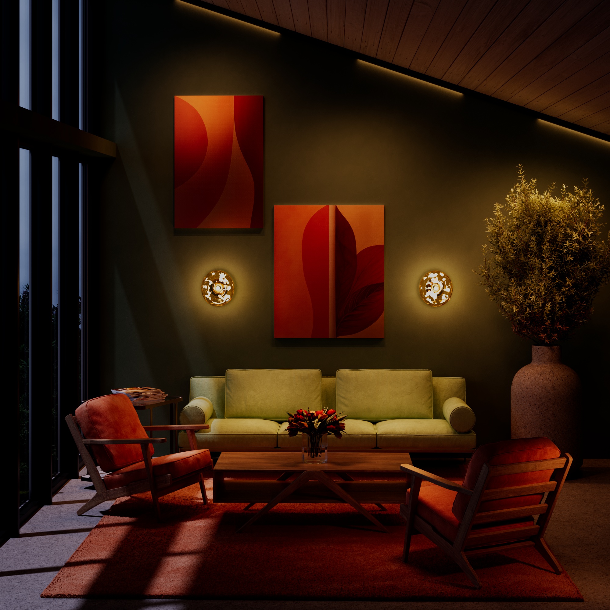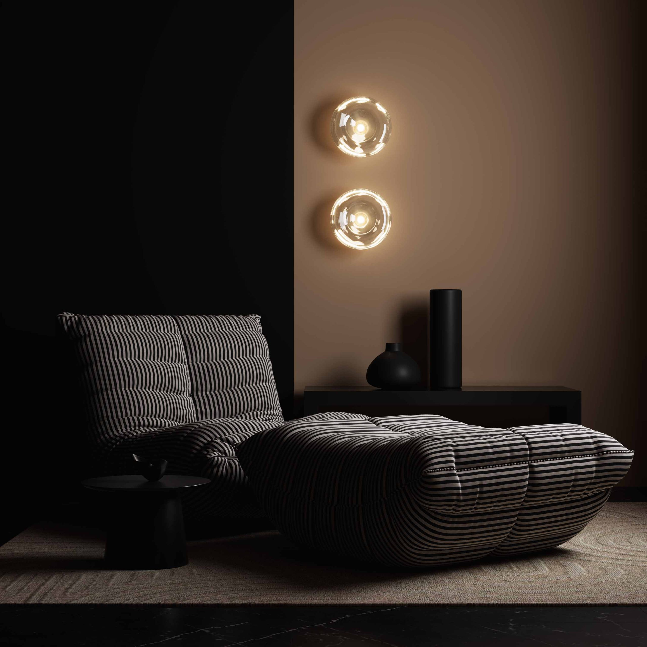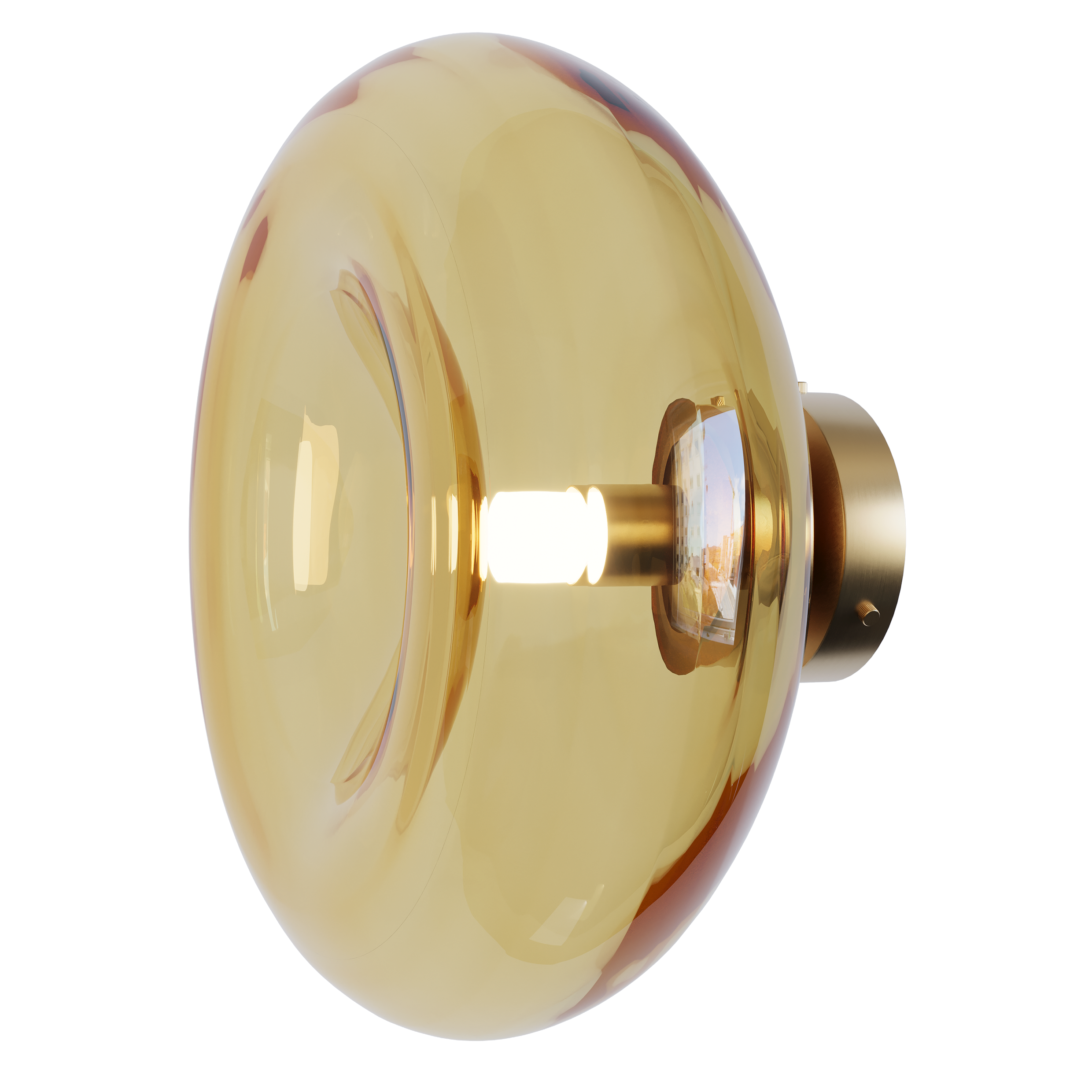 The BRONE wall fixture is a sculptural lighting piece that blends artisanal glasswork with refined brass detailing. Its softly contoured form creates a luminous focal point, emitting a warm, ambient glow that enhances surrounding surfaces with depth and texture. Designed to function both as a decorative object and a source of atmospheric illumination, BRONE delivers a balanced 360° light distribution ideal for accent walls, corridors, and intimate residential or hospitality interiors. The harmonious combination of materials and subtle craftsmanship allows BRONE to integrate seamlessly into modern, eclectic, and classic design environments while maintaining a distinct visual presence.