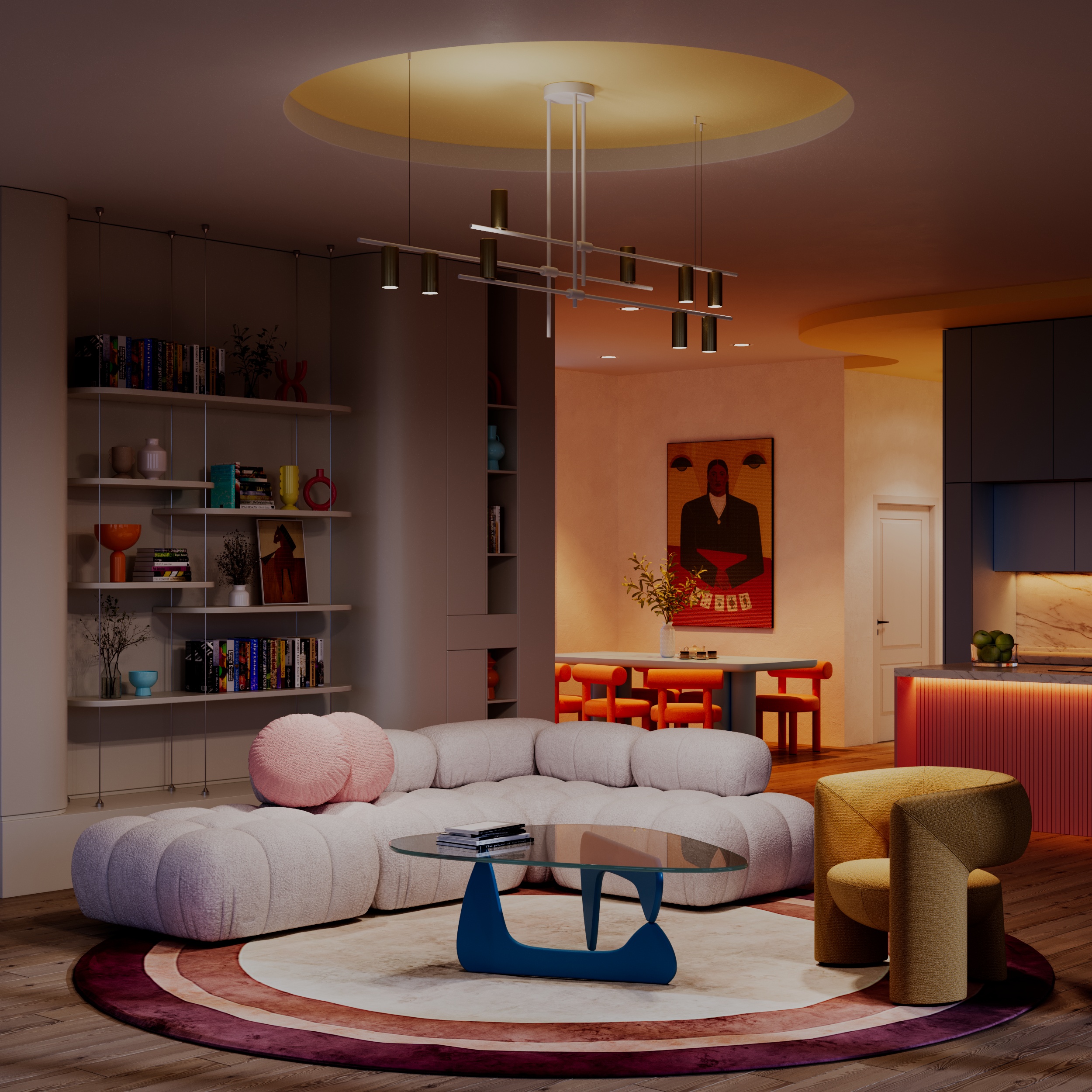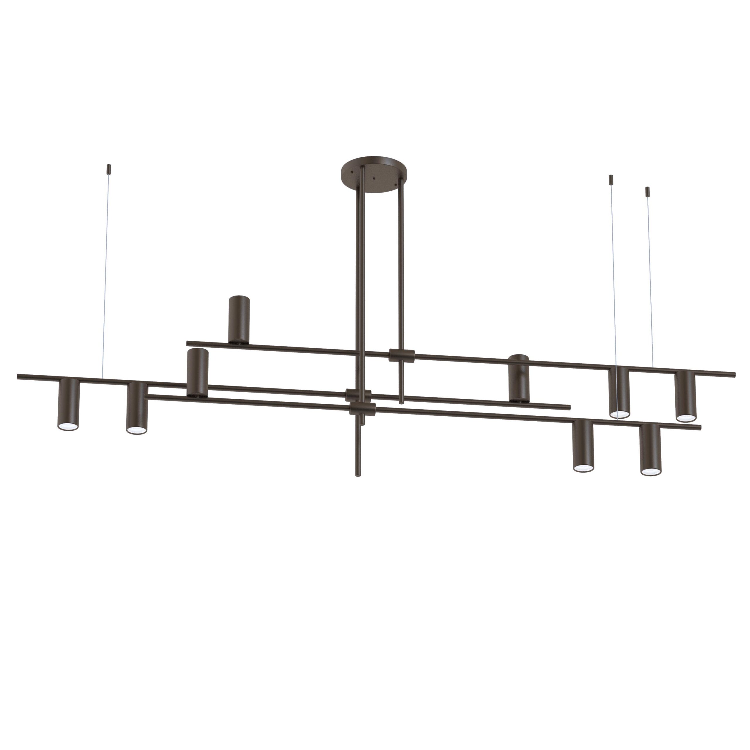 The CONSTRUCTIO is a linear pendant fixture defined by its architectural rhythm and refined material contrast. Featuring a balanced arrangement of cylindrical light elements along a structured brass frame, it delivers both upward and downward illumination to create layered, ambient light. Designed for dining areas, conference spaces, and hospitality interiors, CONSTRUCTIO combines visual precision with functional performance. Multiple finish combinations allow the fixture to adapt seamlessly to modern and transitional environments, while its modular composition reinforces a clean, contemporary aesthetic with a strong architectural presence.