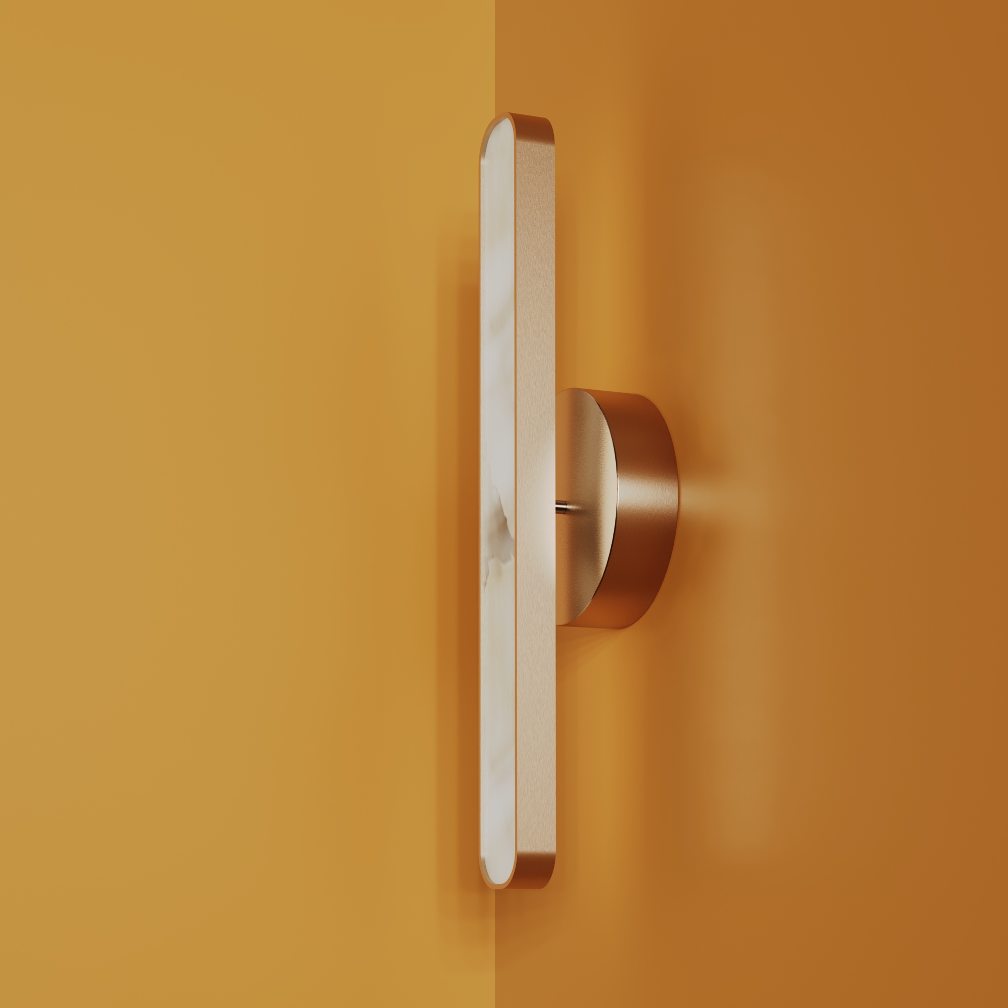 Freccia is a refined wall luminaire featuring a slim vertical profile combined with the soft visual character of faux alabaster. The illuminated panel provides smooth, evenly diffused light, creating a warm and comfortable ambient glow while emphasizing the fixture’s elegant architectural form. Designed to complement contemporary interiors, the clean geometry and balanced proportions allow the fixture to function both as a decorative accent and a functional lighting element. The stainless steel structure paired with the faux alabaster diffuser creates a sophisticated material contrast suitable for residential, hospitality, and commercial spaces.