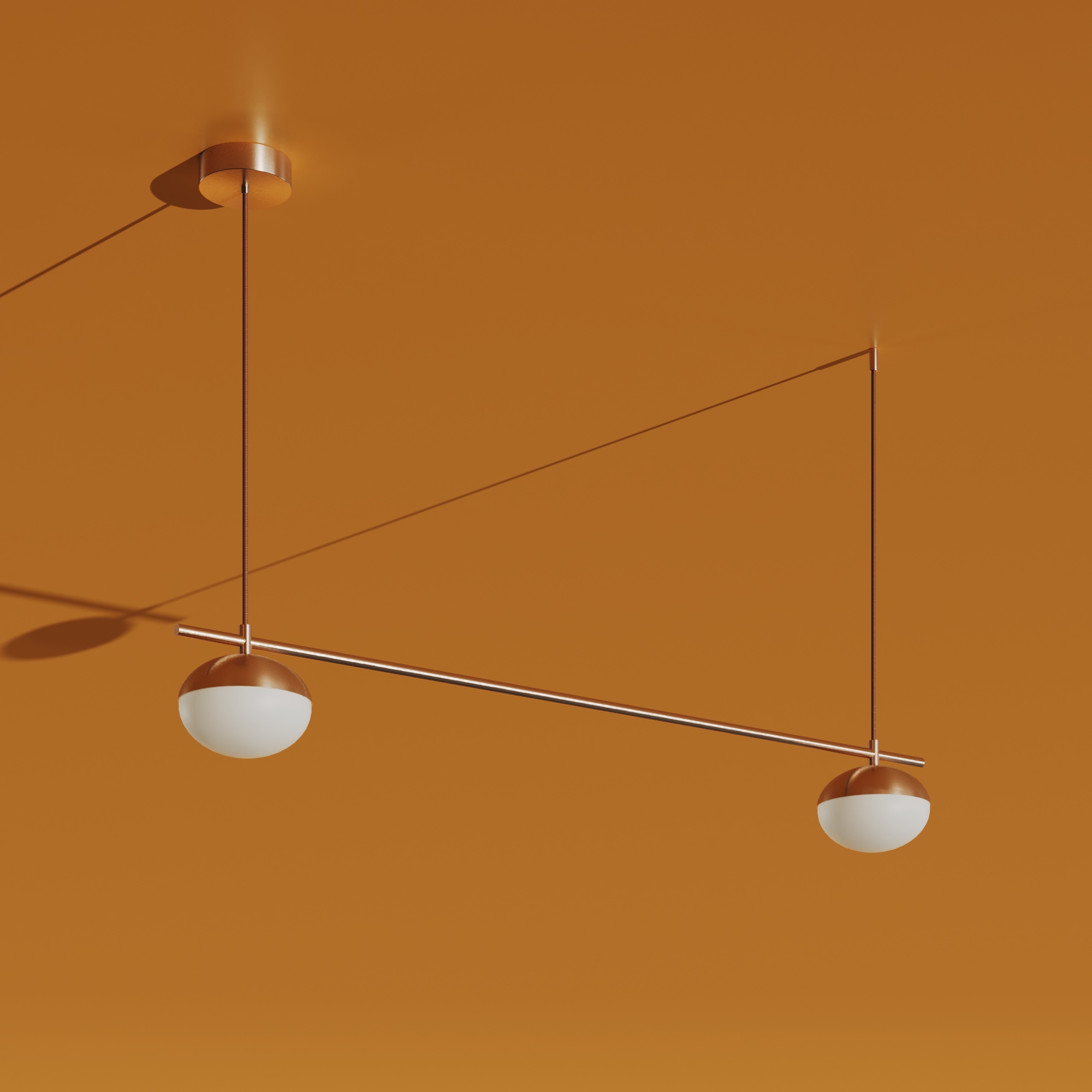 LARENA is a refined linear pendant that blends minimalist geometry with soft, ambient illumination. A slender horizontal bar supports balanced glass diffusers, creating a clean architectural composition ideal for residential and hospitality environments. The design delivers gentle, diffused light while maintaining a light and elegant visual presence. Crafted from aluminum and glass, LARENA offers multiple output options and customizable finishes, allowing seamless integration into a wide range of interiors. Its suspended linear form makes it particularly well-suited for kitchen islands, dining areas, reception counters, and collaborative spaces. Designed for both aesthetics and performance, LARENA combines modern simplicity with warm, comfortable illumination.
