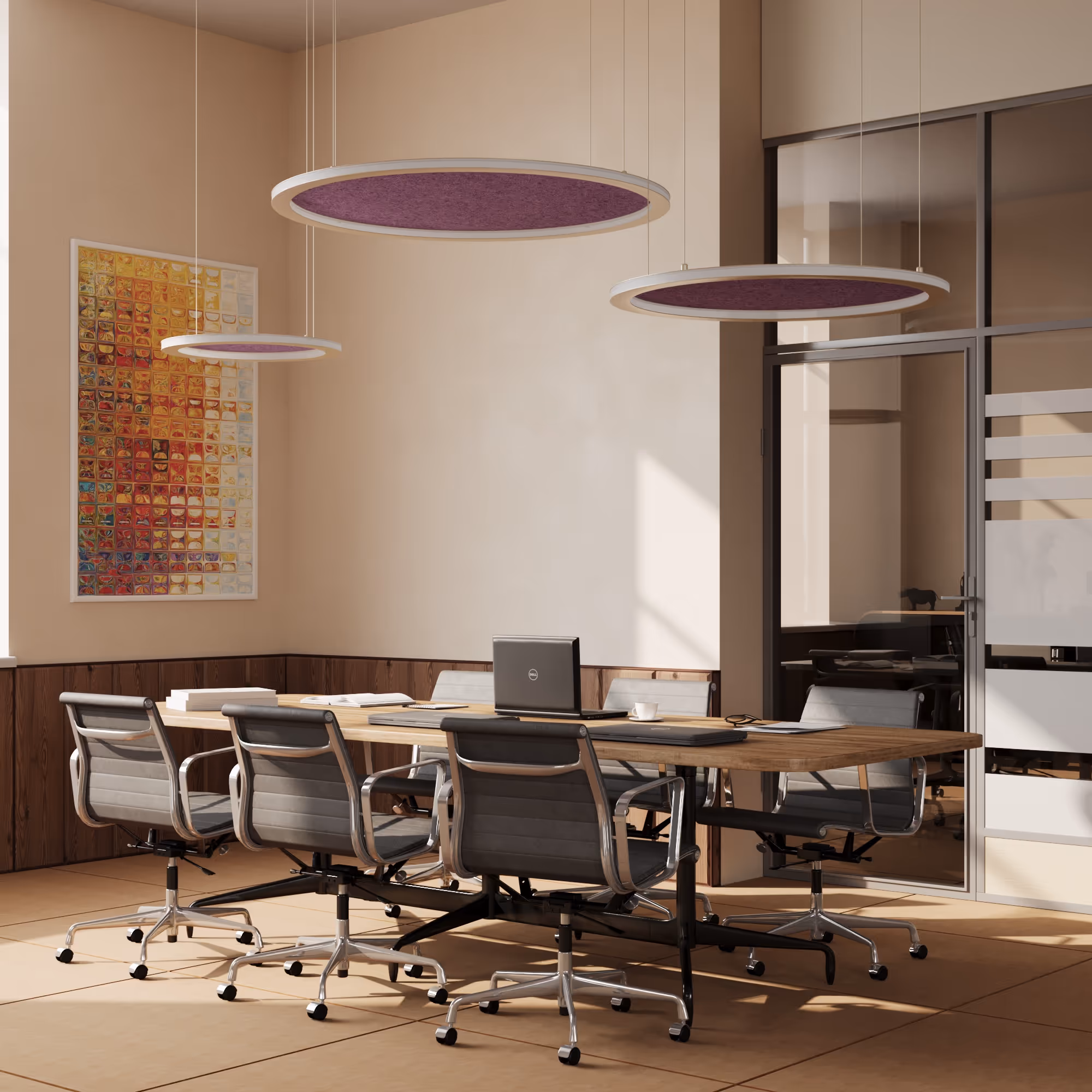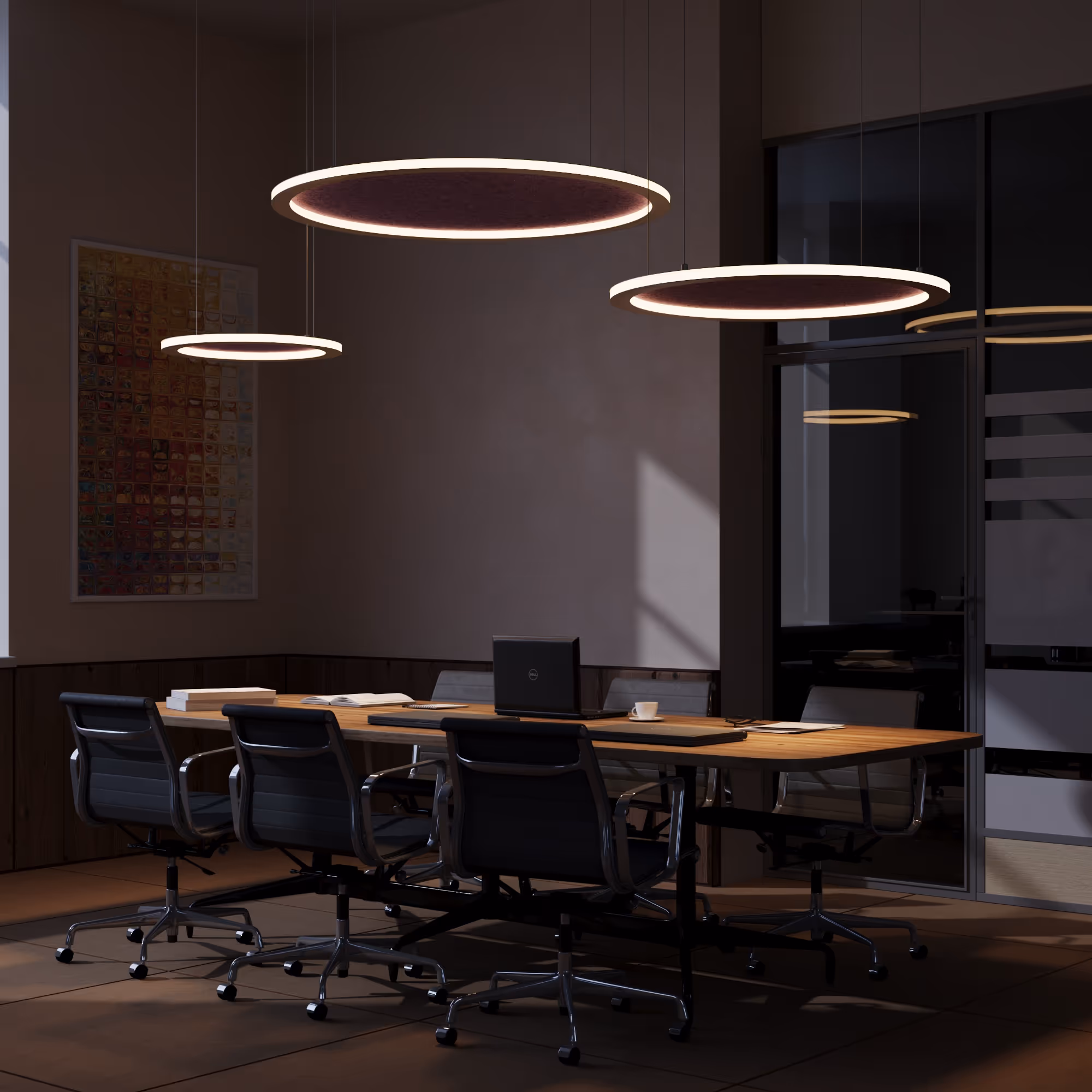 The LOOMA Acoustic Pendant combines high-efficiency LED lighting with advanced sound-absorbing materials, delivering both visual comfort and acoustic enhancement to modern interiors. Its 300° beam in-and-out distribution creates balanced illumination, while the sleek profile and wide range of finishes make it a versatile choice for offices, hospitality, and contemporary living spaces.