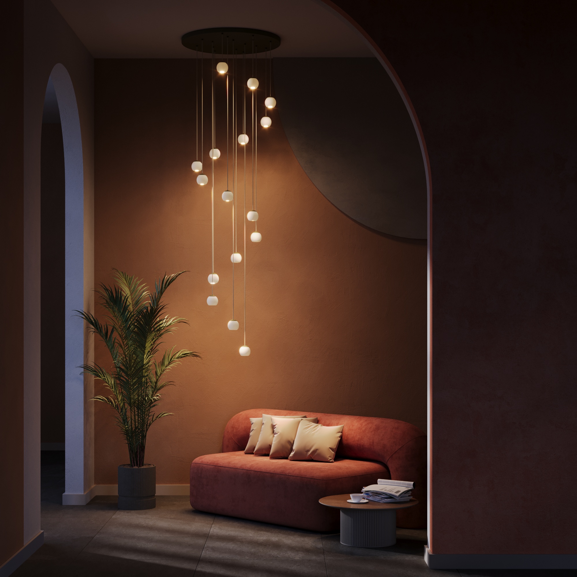 The VITRAE Collection celebrates the expressive nature of glass — a material where color, light, and geometry find their purest form. Each piece is a study in contrast and balance: opacity meets transparency, saturation meets silence, and line meets curve. Through its sculptural compositions and vivid palettes, VITRAE transforms light into a language of emotion and structure. Every pendant is an architectural gesture — playful yet precise, bold yet harmonious. The collection reflects the spirit of modern design: confident in color, thoughtful in form, and endlessly dynamic in the way it interacts with space. In VITRAE, glass becomes more than a surface — it becomes a medium through which atmosphere, rhythm, and clarity are redefined.