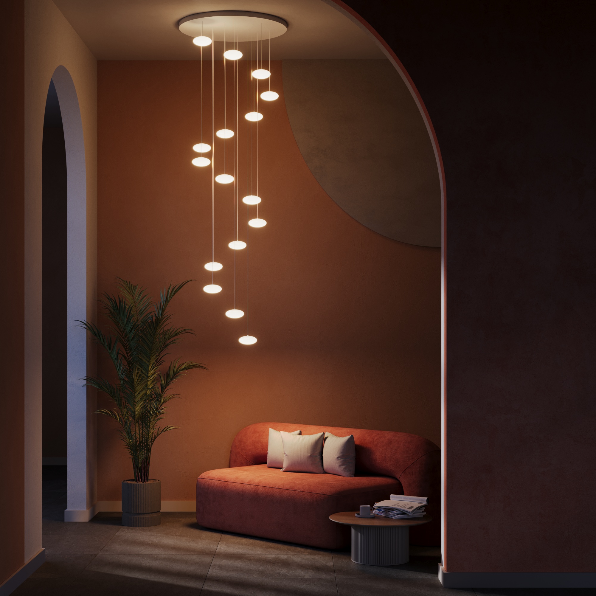The VITRAE Collection celebrates the expressive nature of glass — a material where color, light, and geometry find their purest form. Each piece is a study in contrast and balance: opacity meets transparency, saturation meets silence, and line meets curve. Through its sculptural compositions and vivid palettes, VITRAE transforms light into a language of emotion and structure. Every pendant is an architectural gesture — playful yet precise, bold yet harmonious. The collection reflects the spirit of modern design: confident in color, thoughtful in form, and endlessly dynamic in the way it interacts with space. In VITRAE, glass becomes more than a surface — it becomes a medium through which atmosphere, rhythm, and clarity are redefined.