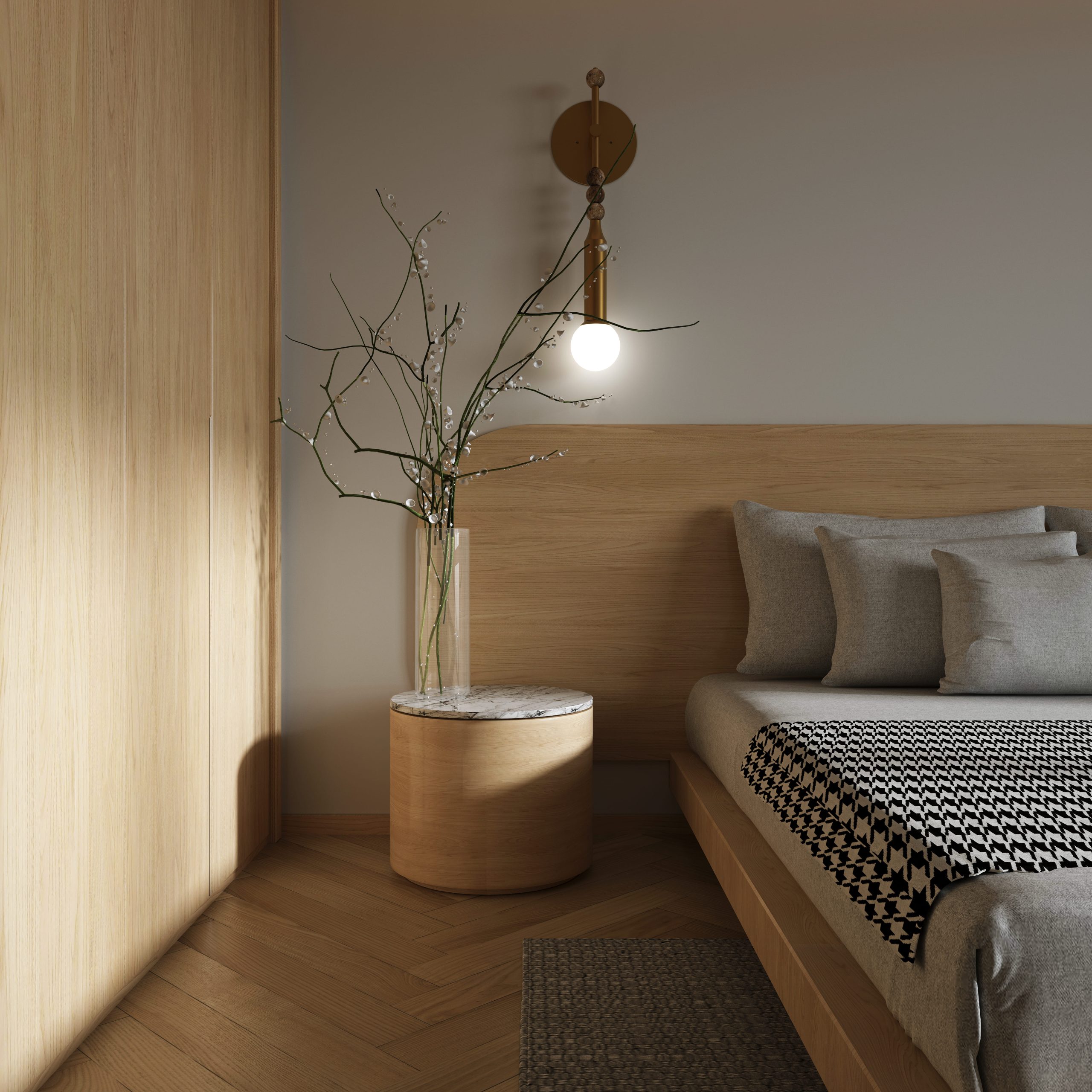 The MONDO is a refined wall-mounted fixture that blends sculptural brass detailing with a softly glowing spherical diffuser, creating a vertical statement piece that delivers warm 360° ambient illumination. Its elongated silhouette and premium materiality bring a sense of crafted elegance to hospitality, residential, and boutique commercial spaces, offering both decorative presence and timeless versatility.