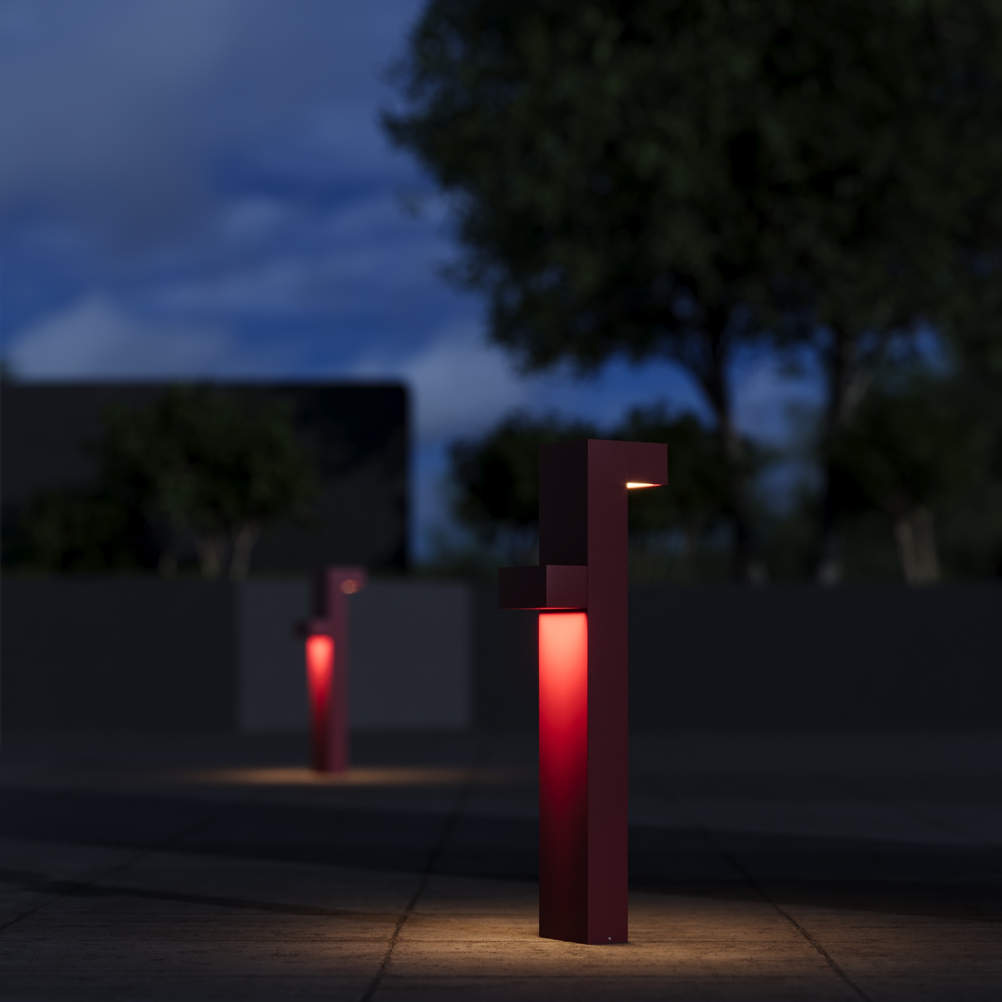 NODEX+ is a compact outdoor bollard luminaire that expands on the sharp geometric language of the NODEX design, featuring an offset dual-aperture configuration that reinforces its strong architectural presence. The solid aluminum body and precise cut-out detailing maintain a clean, disciplined form while ensuring long-term durability in exterior environments. Designed to deliver enhanced, controlled downward illumination with a symmetrical Type V distribution, NODEX+ is well suited for pathways, entrances, and landscape applications where increased light output, visual guidance, and glare control are essential.