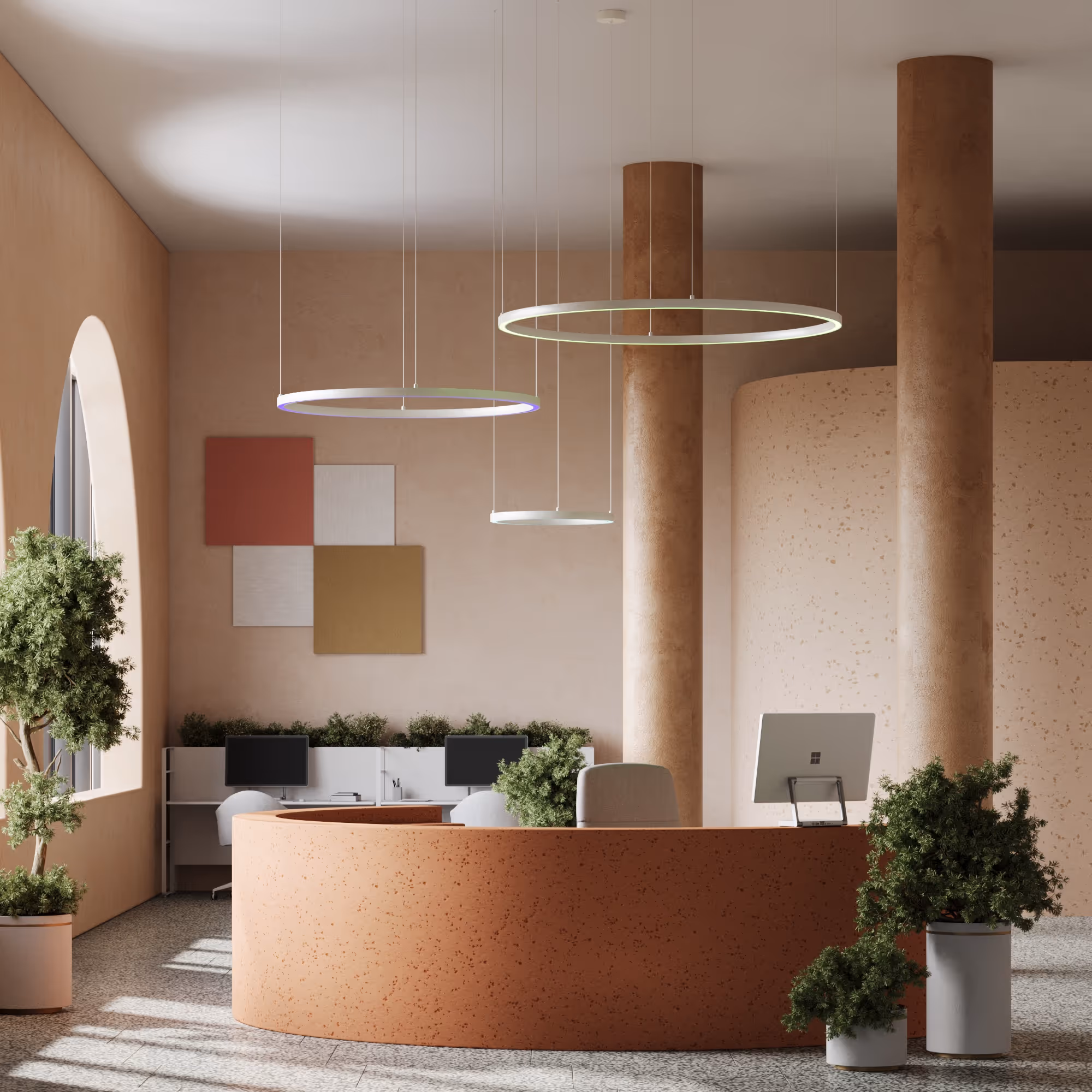 With its minimalist ring shape and sculptural simplicity, Orbita celebrates circular form as a canvas for light. This modern collection of pendant and ceiling fixtures transforms open space into a radiant halo — defined not only by shape, but by directional light movement. Choose from a full range of beam orientations — inward, outward, up, down, or any combination — to create a lighting effect that suits the room’s mood, architecture, or focal needs. Orbita also offers a variety of ring profile **heights and widths**, as well as lighting options including **Tunable White** and **RGBW** configurations. Each fixture is crafted with architectural precision and is available exclusively in **standard painted RAL finishes**. With multiple diameters, profile styles, and beam directions, Orbita adapts to nearly any modern environment while maintaining its iconic circular identity. One shape. Infinite light paths.
