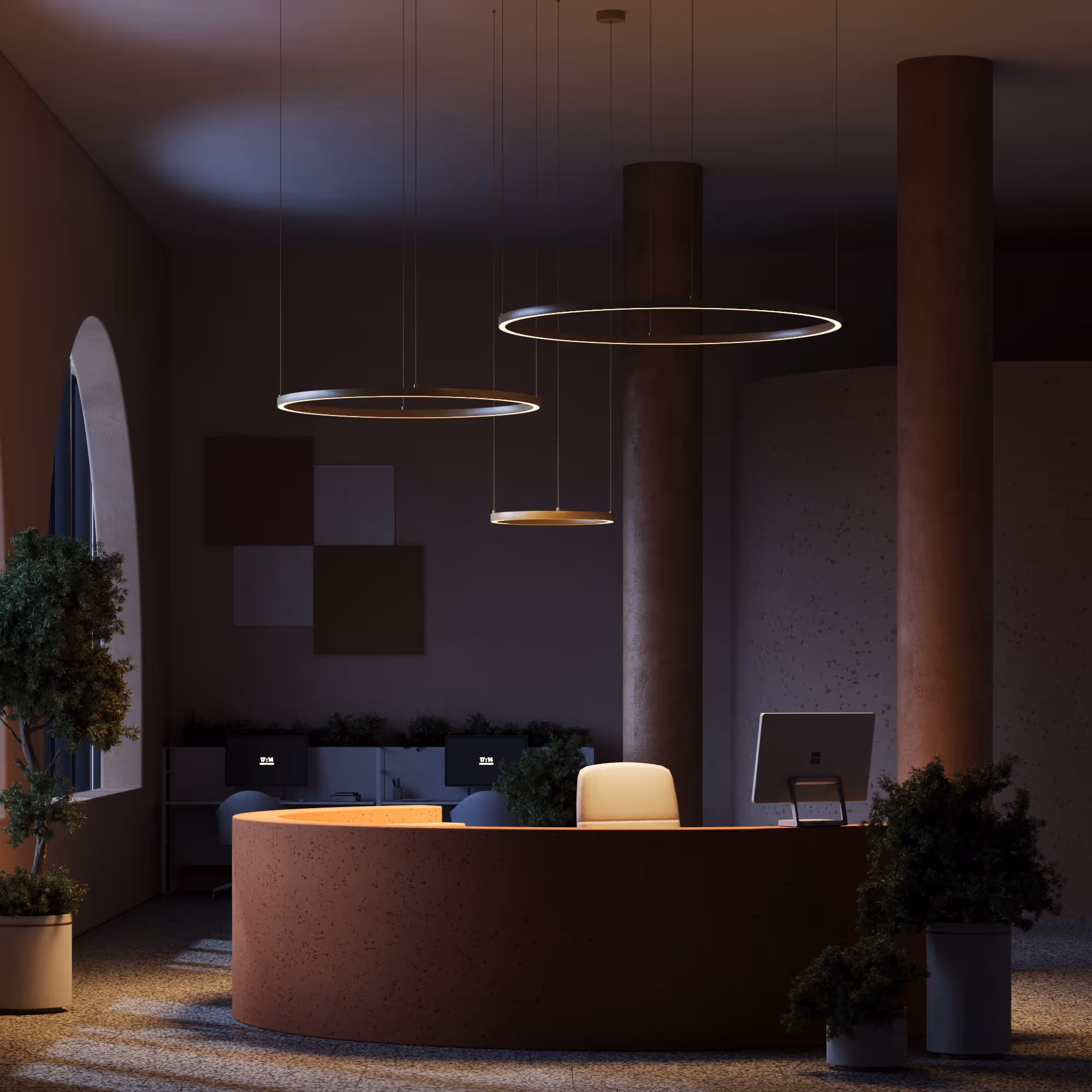 With its minimalist ring shape and sculptural simplicity, Orbita celebrates circular form as a canvas for light. This modern collection of pendant and ceiling fixtures transforms open space into a radiant halo — defined not only by shape, but by directional light movement. Choose from a full range of beam orientations — inward, outward, up, down, or any combination — to create a lighting effect that suits the room’s mood, architecture, or focal needs. Orbita also offers a variety of ring profile **heights and widths**, as well as lighting options including **Tunable White** and **RGBW** configurations. Each fixture is crafted with architectural precision and is available exclusively in **standard painted RAL finishes**. With multiple diameters, profile styles, and beam directions, Orbita adapts to nearly any modern environment while maintaining its iconic circular identity. One shape. Infinite light paths.