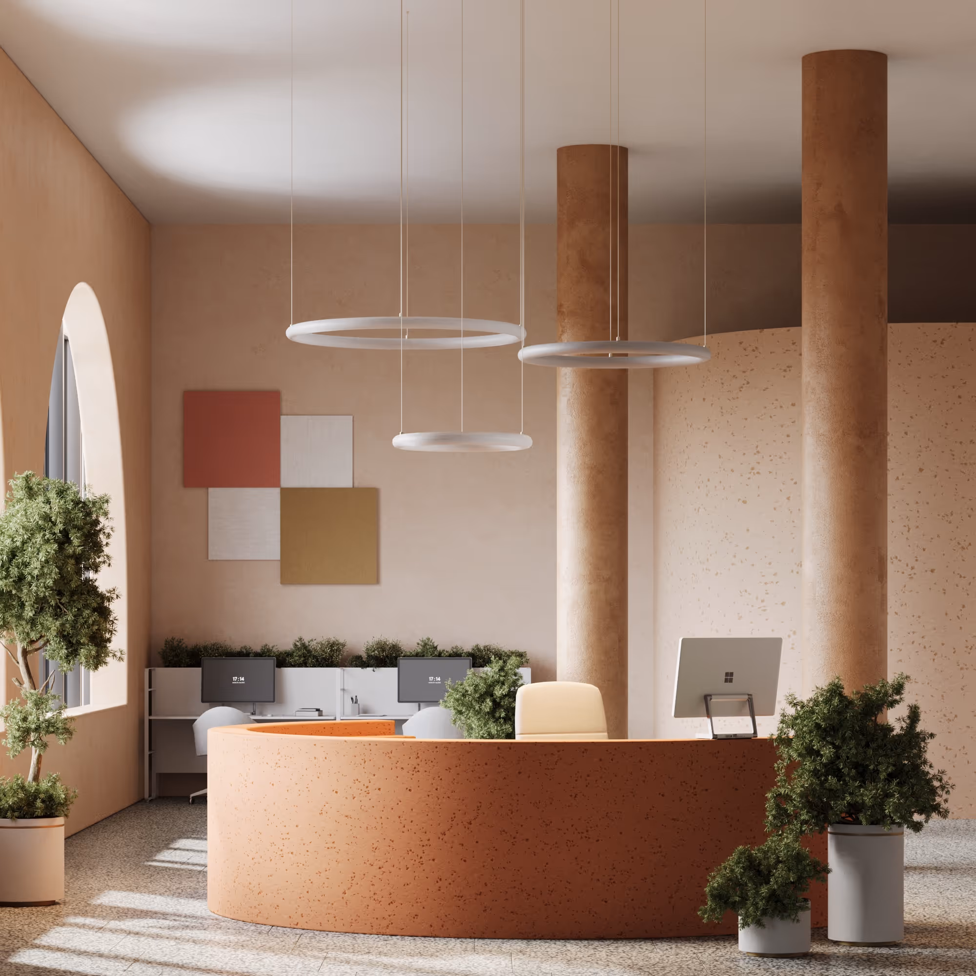 The Orbita Lumen Circle delivers uninterrupted 360-degree illumination through a sleek, seamless ring design. Crafted from lightweight polycarbonate, this luminaire offers soft, evenly diffused light that wraps the space in visual balance. Ideal for modern interiors that demand both elegance and efficiency, the Orbita Lumen Circle is a standout solution for hospitality, office, and retail environments.