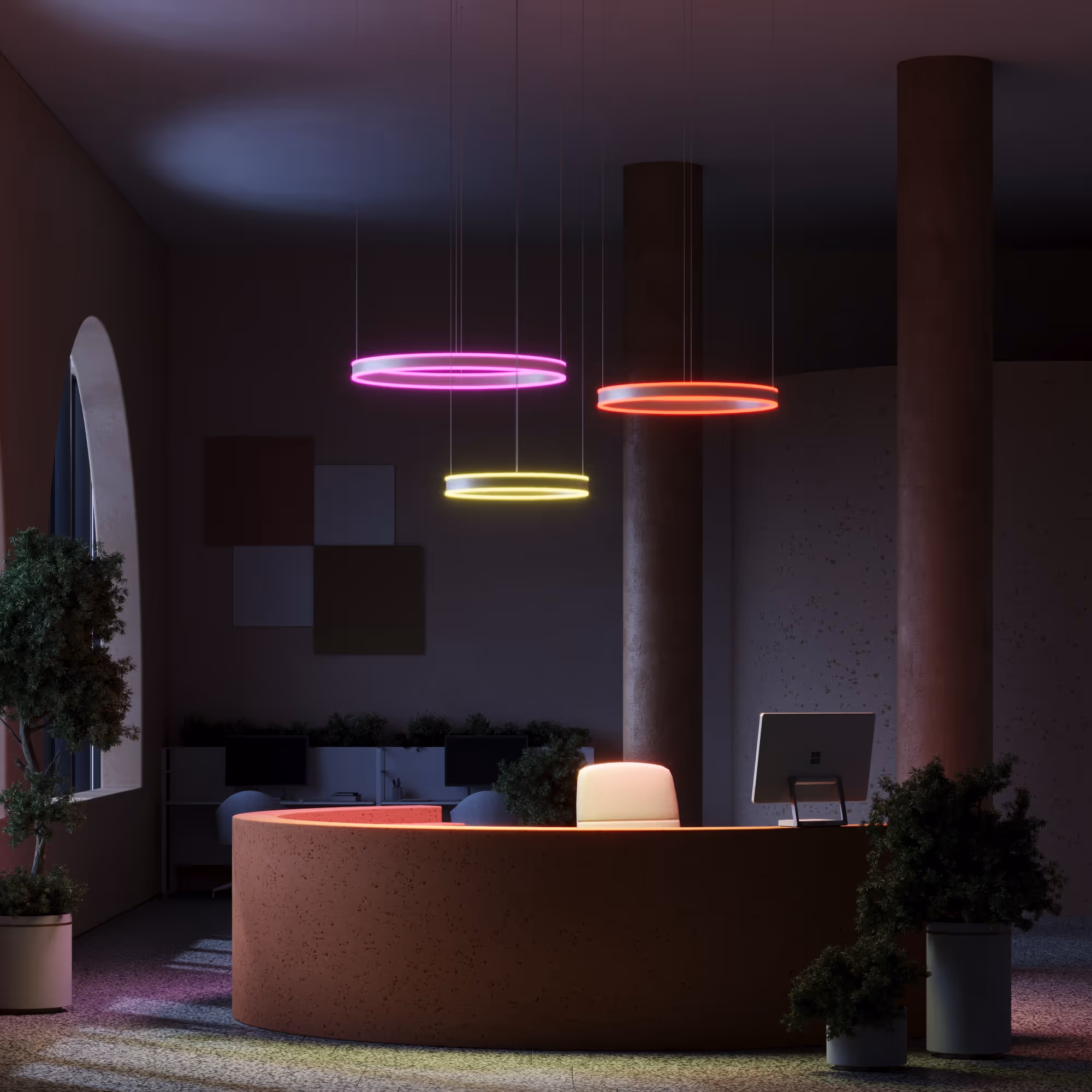 The Orbita Pulse Circle is a contemporary RGB pendant luminaire that brings dynamic color and architectural precision to modern environments. With its streamlined profile and dual-beam distribution (up and down), Pulse offers immersive ambient lighting and impactful visual effects. Designed for versatility in commercial, hospitality, and creative spaces, it combines performance-driven illumination with a minimalist aesthetic.
