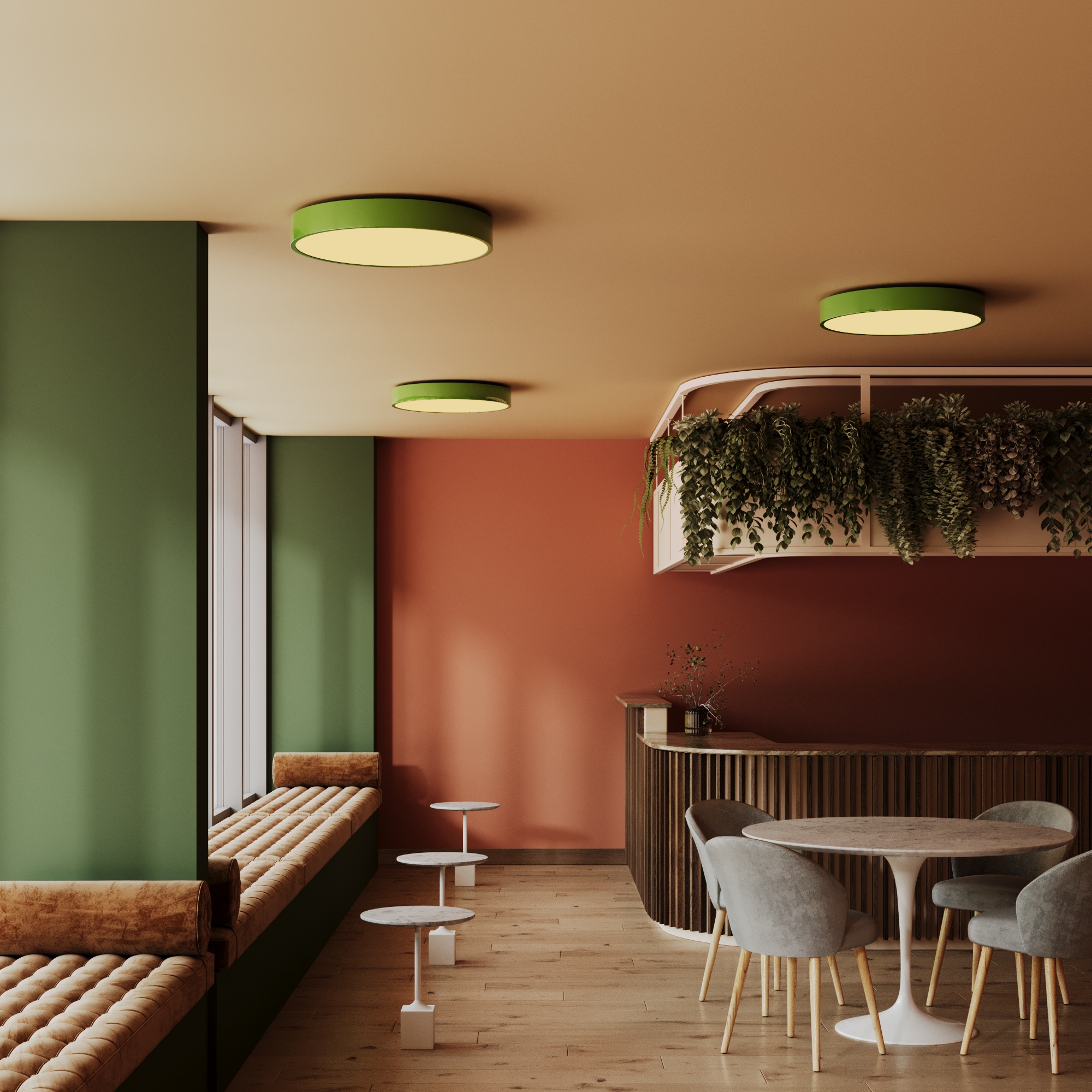 PLAFONIA is a celebration of form, color, and creative lighting. Designed to elevate the overlooked surface of the ceiling, this indoor lighting collection introduces sculptural charm and modern function to every room. Whether round, square, domed, or layered, each fixture is a character in the room — playful, purposeful, and boldly present. With a mix of vibrant powder-coated finishes and opal diffusers, PLAFONIA offers visual joy with every glow. From compact ceiling globes to expressive multi-arm clusters, this collection transforms lighting from background utility into statement design. Each piece is thoughtfully crafted for interiors that value creativity, warmth, and a sense of identity.