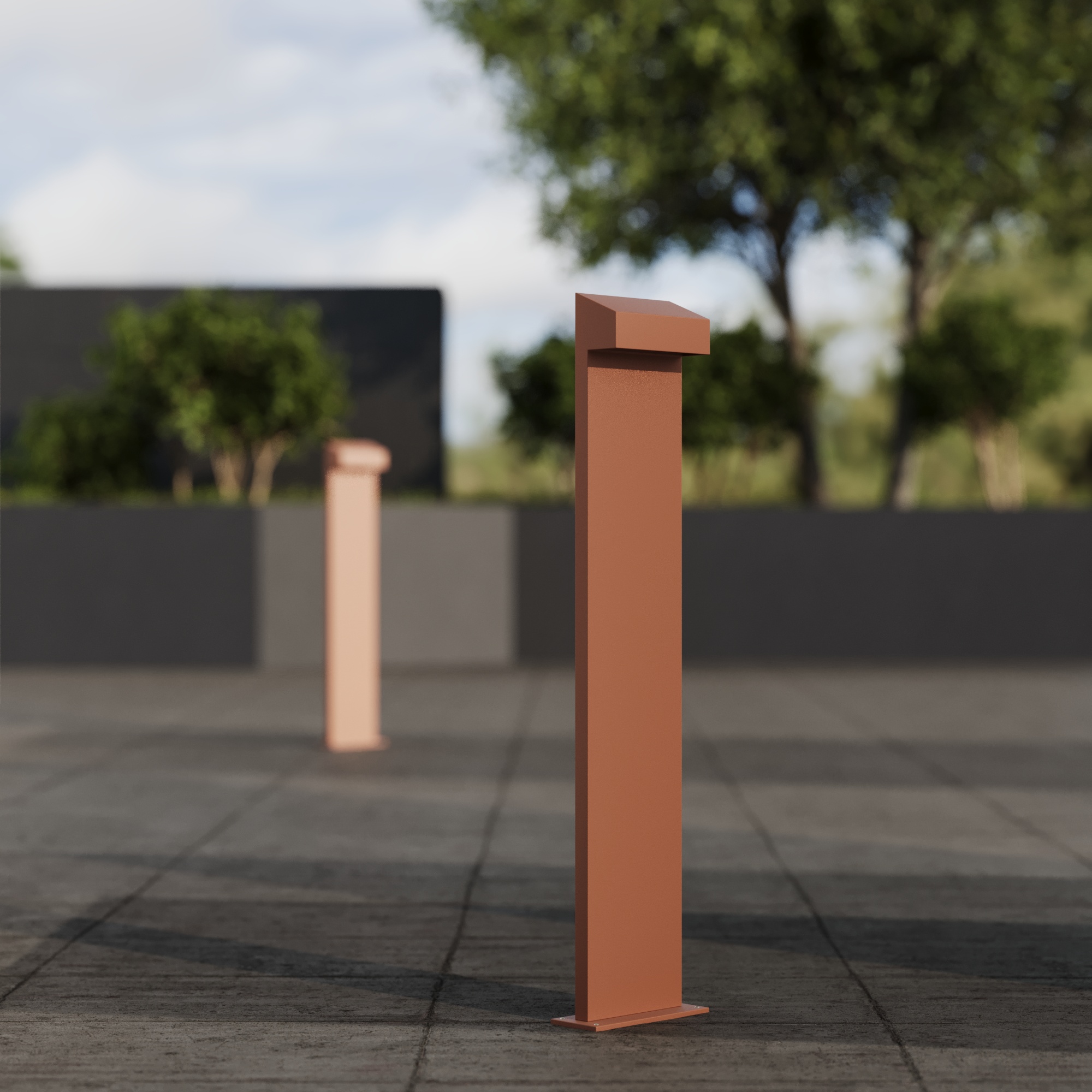 TALUS is a compact outdoor bollard luminaire characterized by its bold linear profile and pronounced cantilevered head, creating a confident architectural expression with clear directional intent. The solid aluminum construction and crisp geometry emphasize material strength while ensuring durability in demanding exterior conditions. Designed to provide controlled, downward illumination with a symmetrical Type V distribution, TALUS is well suited for pathways, entrances, and landscape environments where precise light placement, visual comfort, and a strong contemporary identity are essential.